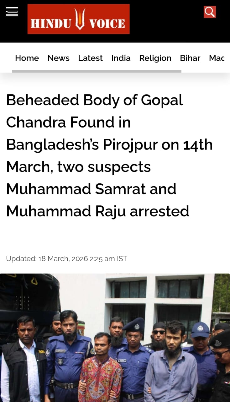 Another gruesome killing had shocked religious minorities across Bangladesh, after 45 year Gopal Chandra was beheaded by Muhammad Samrat and Muhammad Raju on 13.03.2026.